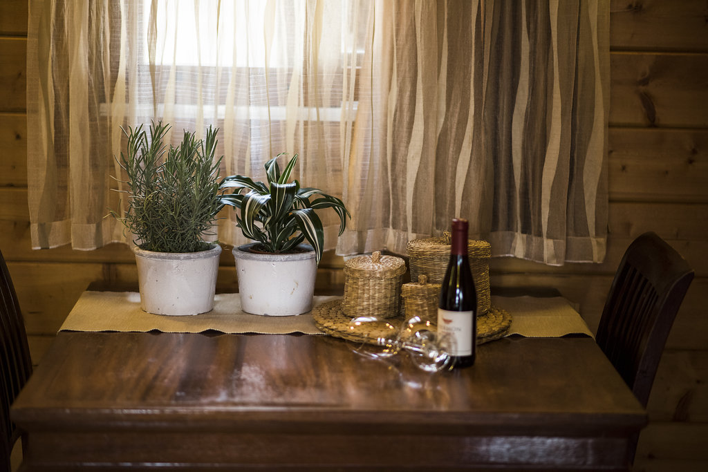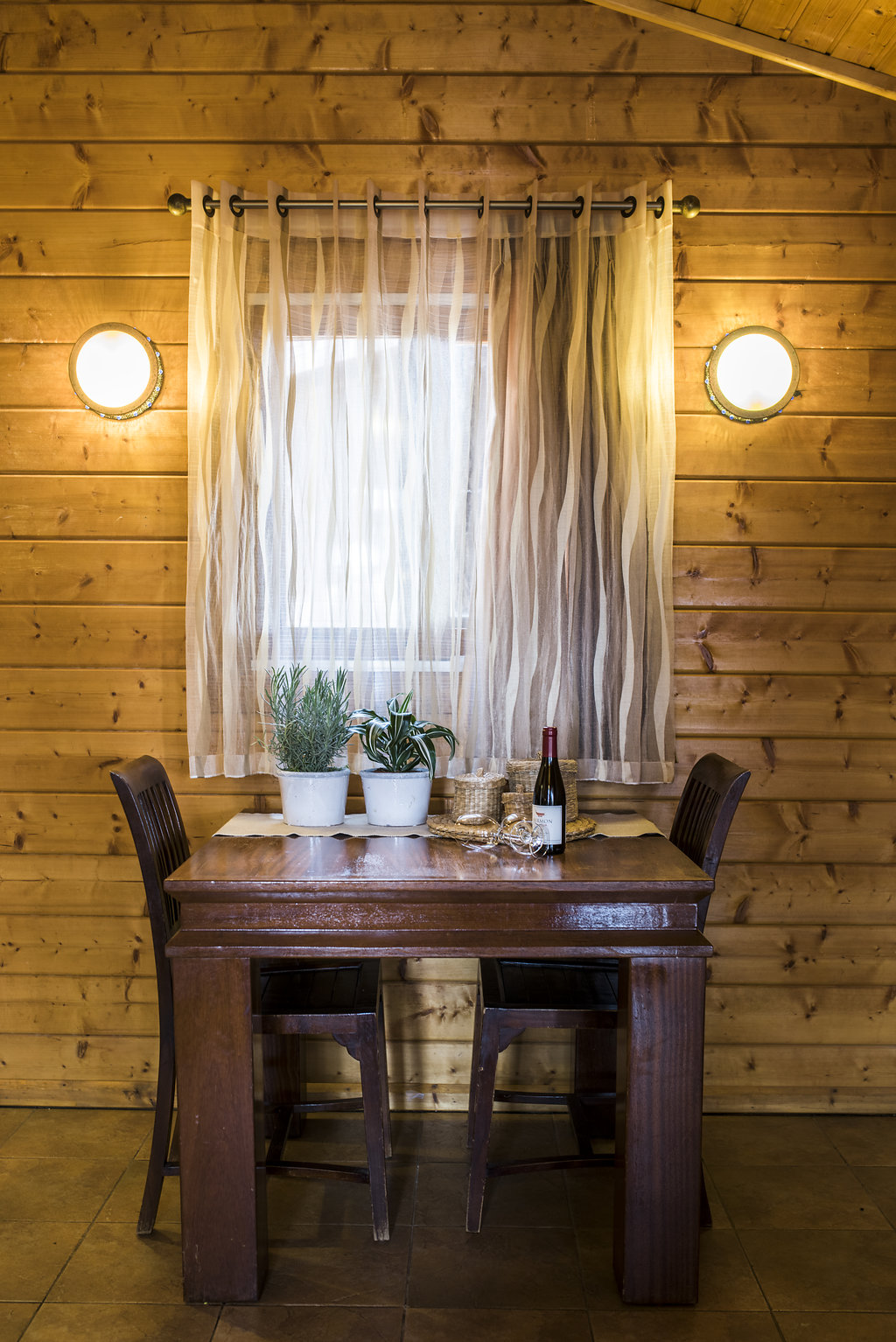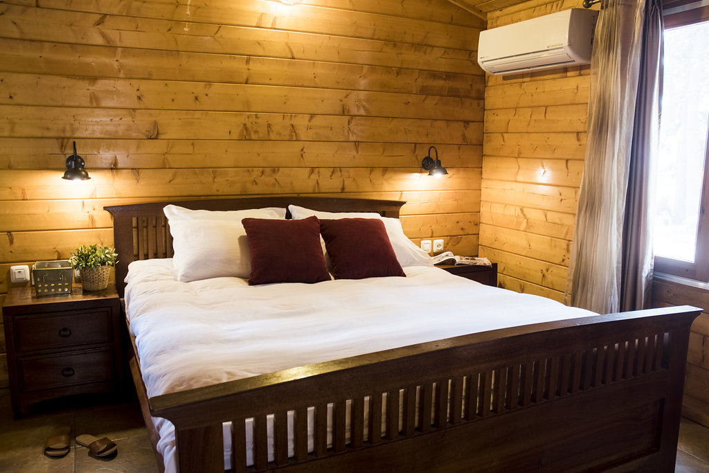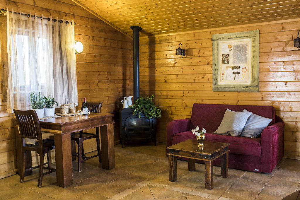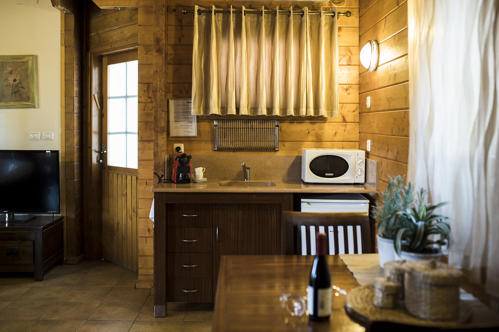 10 בקתות עץ סקנדינביות מפנקות עם ג`קוזי עץ עגול מפנק במרכז הבקתה ושלל פינוקים, הנטועות בתוך חורש אורנים. גודל כל בקתה כ- 40 מ``ר והיא כוללת 2 חדרים - חדר שינה זוגי עם מיטה מפנקת ומסך LCD לטלוויזיה בלוויין וסלון ובו ספה הנפתחת למיטה וחצי. עוד בבקתה קמין בוער בחודשי החורף (בהתאם למזג האוויר), המשמש לחימום רומנטי בחודשי החורף, מטבחון מצויד הכולל מכונת קפה, מיקרוגל, מקרר, פינת קפה וכלי אוכל (לא כולל אמצעי בישול). הבקתות ממוזגות ולכל בקתה מרפסת פרטית גדולה עם פינת ישיבה.